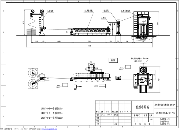 技术参数(见表格) L400/450直列式9-13模铜大拉机技术参数
