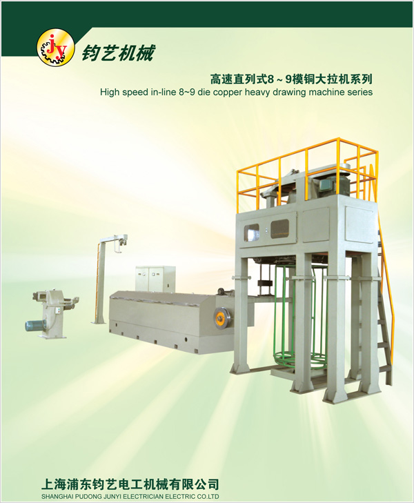 用途: 本机器专供电线电缆厂家拉制进线直径为φ8.0mm。出线直径为φ1.2~4.0mm的圆铜线材之用,可拉制硬铜线和连续退火软铜线。拉线鼓轮采用串列式排列,定速轮和其它12道拉线鼓轮分别由二台直流电机拖动,可进行快速换模,极大地方便了操作。